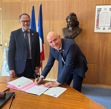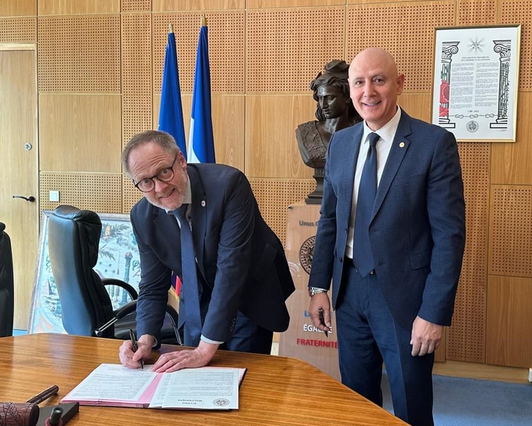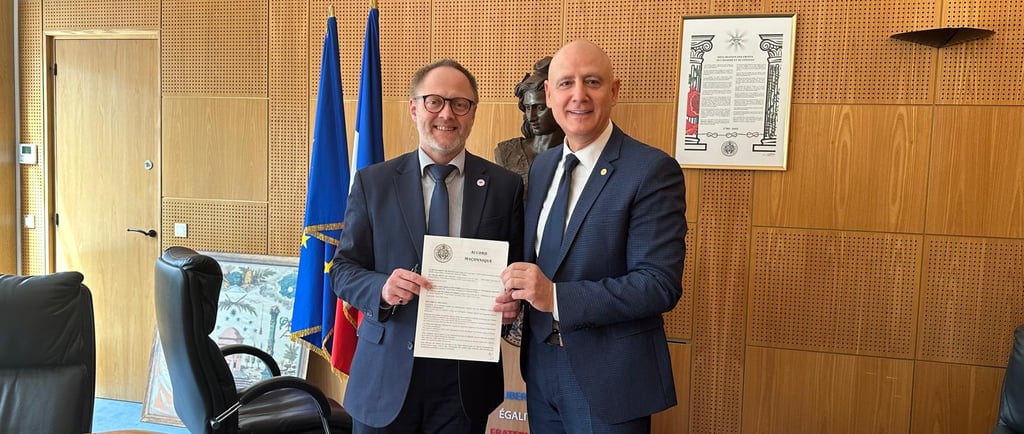 On Monday, July 7, 2025, in Paris, in the premises of the Council of the Order of the Grand Orient of France, the Grand Master of the Grand Orient of France, M:.W:. Nicolas Penin and Grand Master of the Liberal Grand Lodge of Serbia M:.W:. Vladimir Marković signed the Agreement on mutual recognition and amity between the two European obediences. This act represents a significant recognition of the work of the Liberal Grand Lodge of Serbia and certainly contributes to the further growth and strengthening of Masonic traditions and values in Serbia and on the Western Balkans.