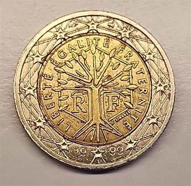 On the back side of the French edition of the One Euro coin it is written: "Liberty- Equality - Brotherhood"