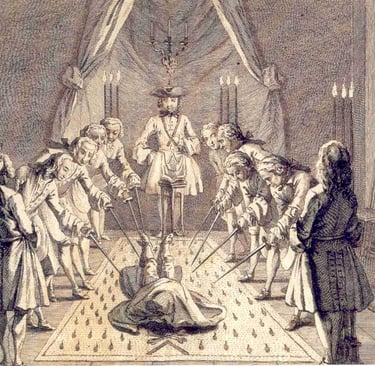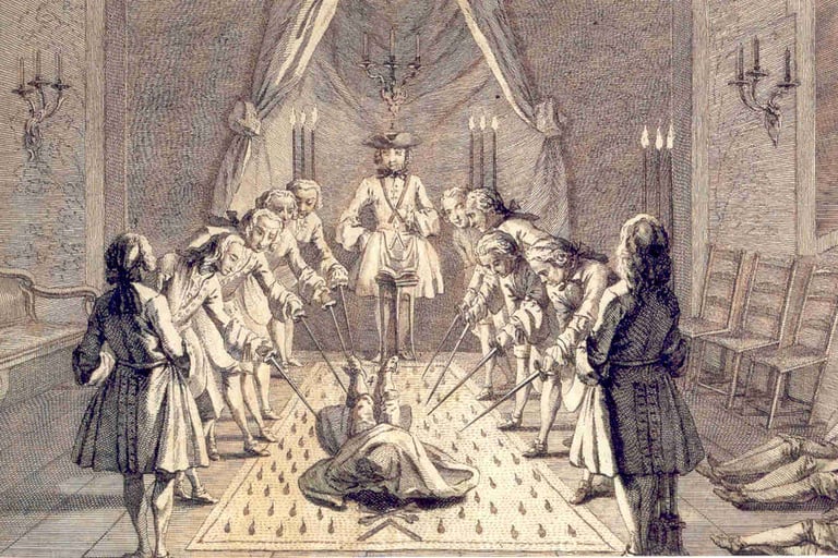 Slobodno-zidarska inicijacija (Francuska gravura - 18. vek)